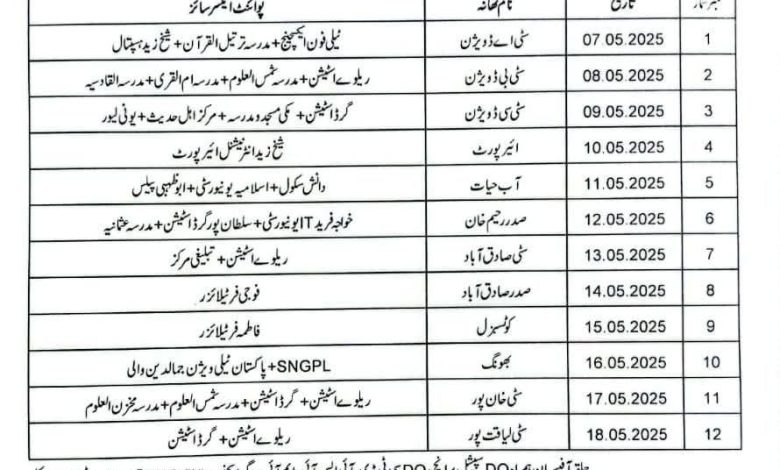 رحیم یارخان میں 12روزہ موک ایکسرسائز کا شیڈول جاری کر دیا